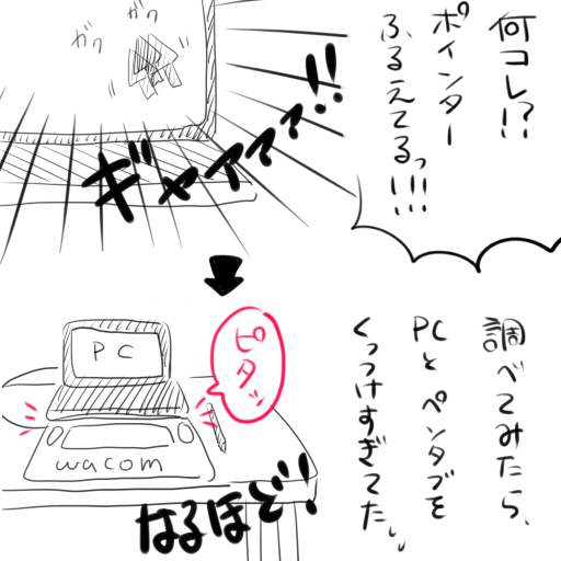 ただ単純にPCとペンタブをくっつけすぎだった。