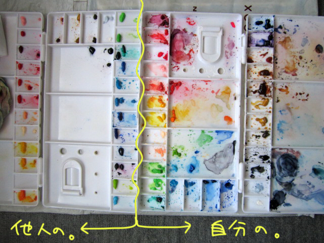 イベント関係ない、My透明水彩パレット。と、違う人のパレット。
